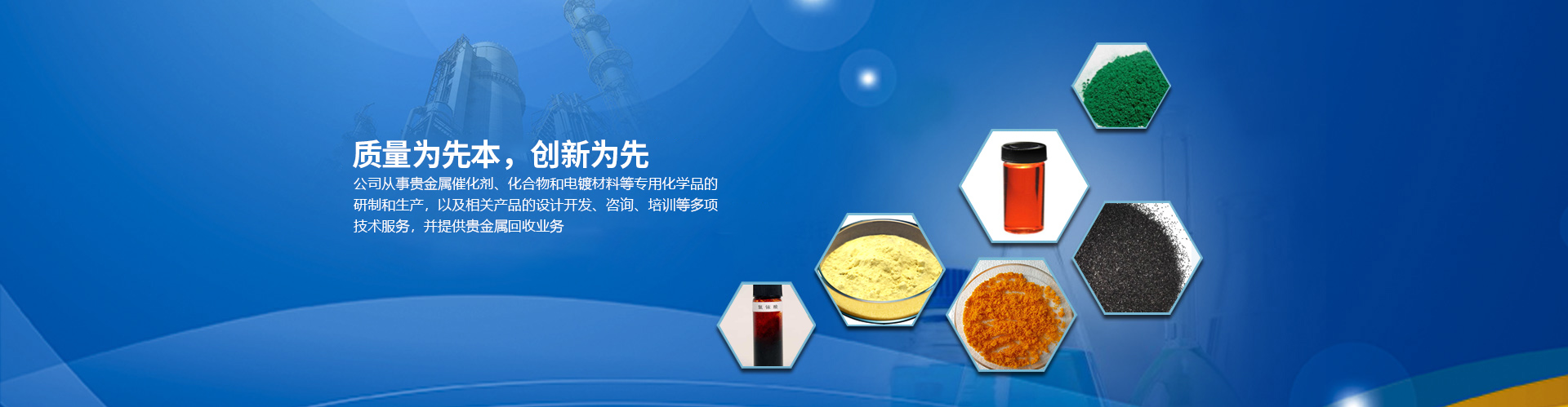 目前公司的主要產(chǎn)品有:醋酸鈀、氯化鈀、硝酸鈀、硫酸鈀、氯鉑酸、反-二(三苯基膦)二氯化鈀、四(三苯基膦)鈀、乙酰丙酮鈀;三氯化銠、辛酸銠、碘化銠、硝酸銠、醋酸銠、三苯基膦氯化銠、三苯基膦乙酰丙酮羰基銠、三苯基膦氯化銠、乙酰丙酮二羰基銠等,廣泛應(yīng)用于藥物合成、石油化工、精細(xì)化工和電鍍領(lǐng)域。本公司對(duì)所有產(chǎn)品進(jìn)行嚴(yán)格檢測從定量和定性方面嚴(yán)把質(zhì)量關(guān),并通過ISO90001質(zhì)量體系認(rèn)證。